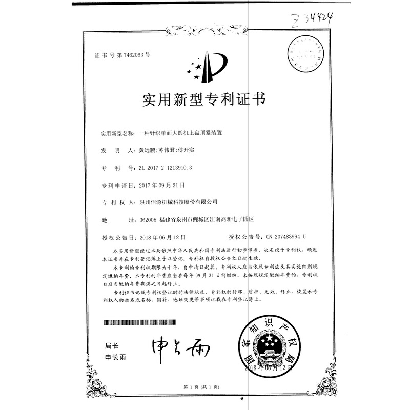 新型-一種針織單面大圓機(jī)上盤頂緊裝置