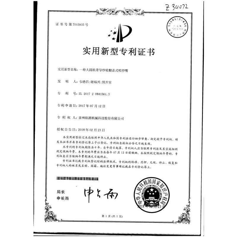 一種大圓機(jī)帶導(dǎo)紗輪翻蓋式喂紗嘴