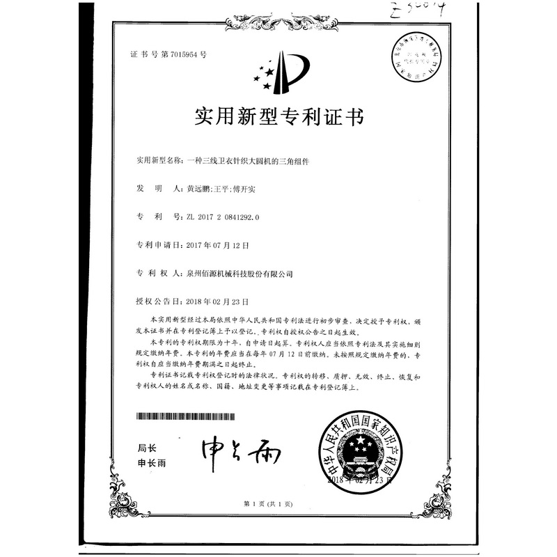 一種三線衛(wèi)衣針織大圓機(jī)的三角組件