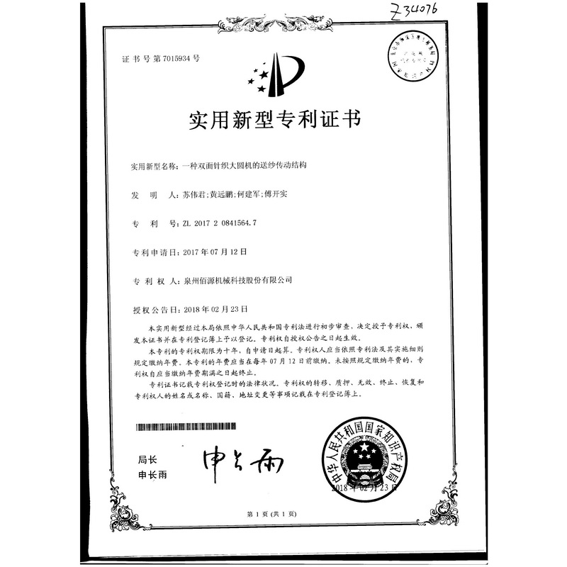 一種高路數(shù)雙面棉毛機(jī)