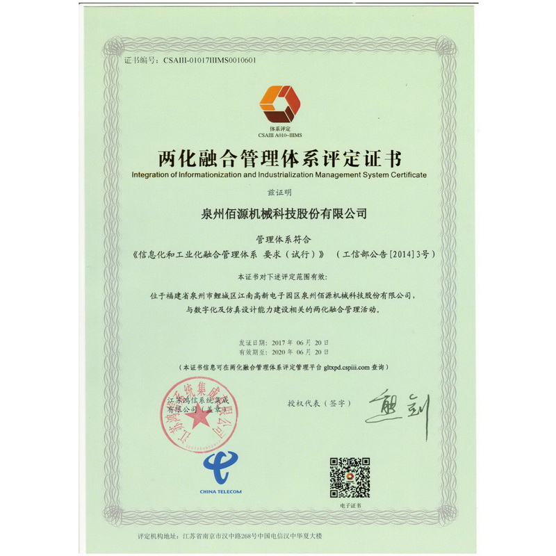 兩化融合貫標(biāo)證書